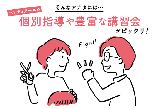 当店では、オーナーの個別指導だけでなく、美容業界の様々な外部講師を招いたり、外部の講習会に積極的に参加できる環境が揃っています。技術練習は基本的に週2回の実施ですが、営業中でも空いている時間があれば練習可能で、意欲があればしっかりフォローします!その他にも、より楽しく幅広く技術を伸ばしていけるよう、プロカメラマンからSNSにも対応した最新の撮影技術を学んだりと、あなたの学ぶ意欲をしっかりと成長につなげていけるサポートを全力でしていきます。一人一人の成長スピードに合わせフォローしていくので、安心して練習でき、あなたらしくキャリアアップできますよ!